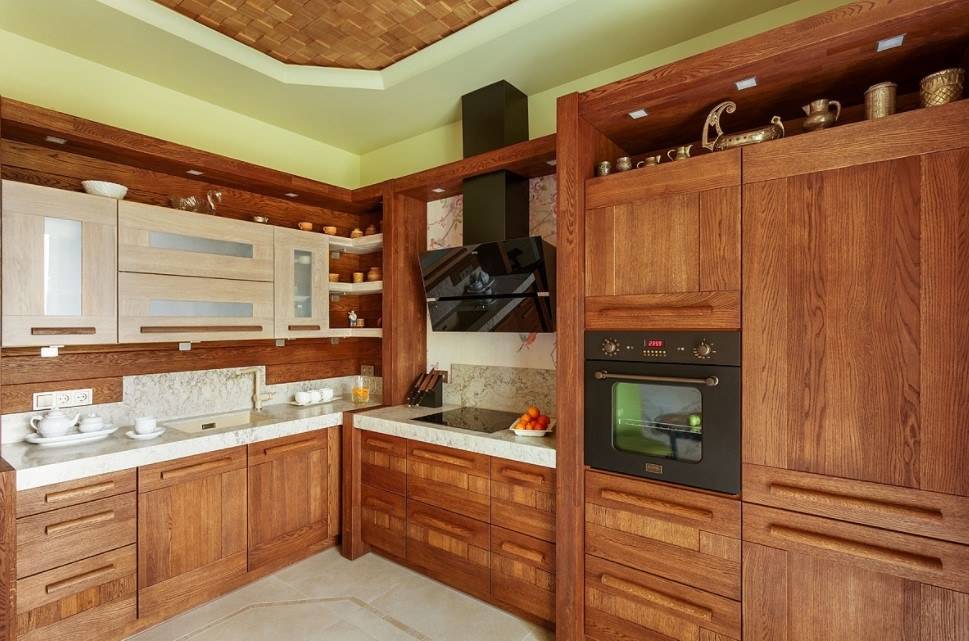 Верней, они тоже могут быть деревянными, но уже крашенными, а не натурального цвета. Иначе, вы сделаете сильный акцент на некрашеном дереве, ваша кухня начнёт напоминать сауну!