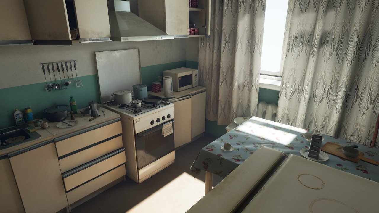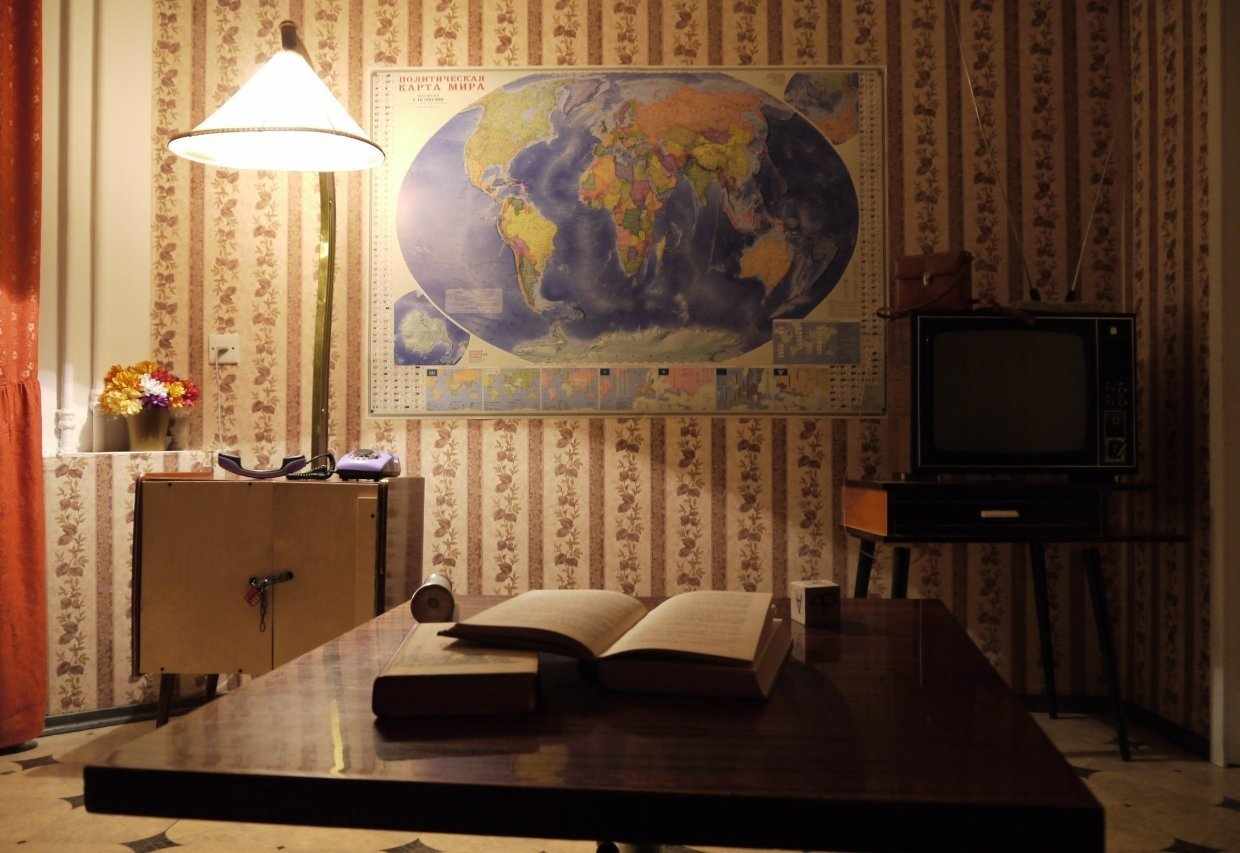 Особых изысков не было, убранство комнат состояло из металлических кроватей на сетке, платяного шкафа под ключ, этажерки, полок для книг, круглого стола, накрытого скатертью, буфета для посуды. Комнату украшал кожаный диван с полочкой, зеркалом, узнаваемая по фильмам настольная лампа на массивном столе, с зеленым абажуром.