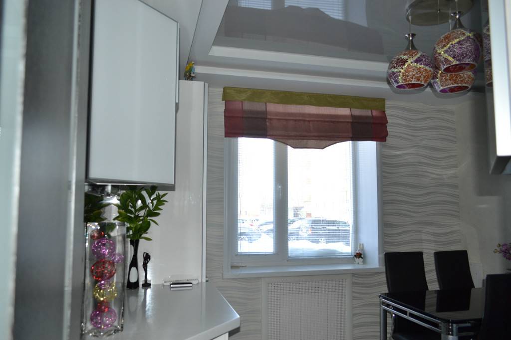 - в тёмное время суток при включённом свете штора будет просвечиваться и показывать миру происходящую на кухне обстановку, а наличие штор может решить эту проблему;