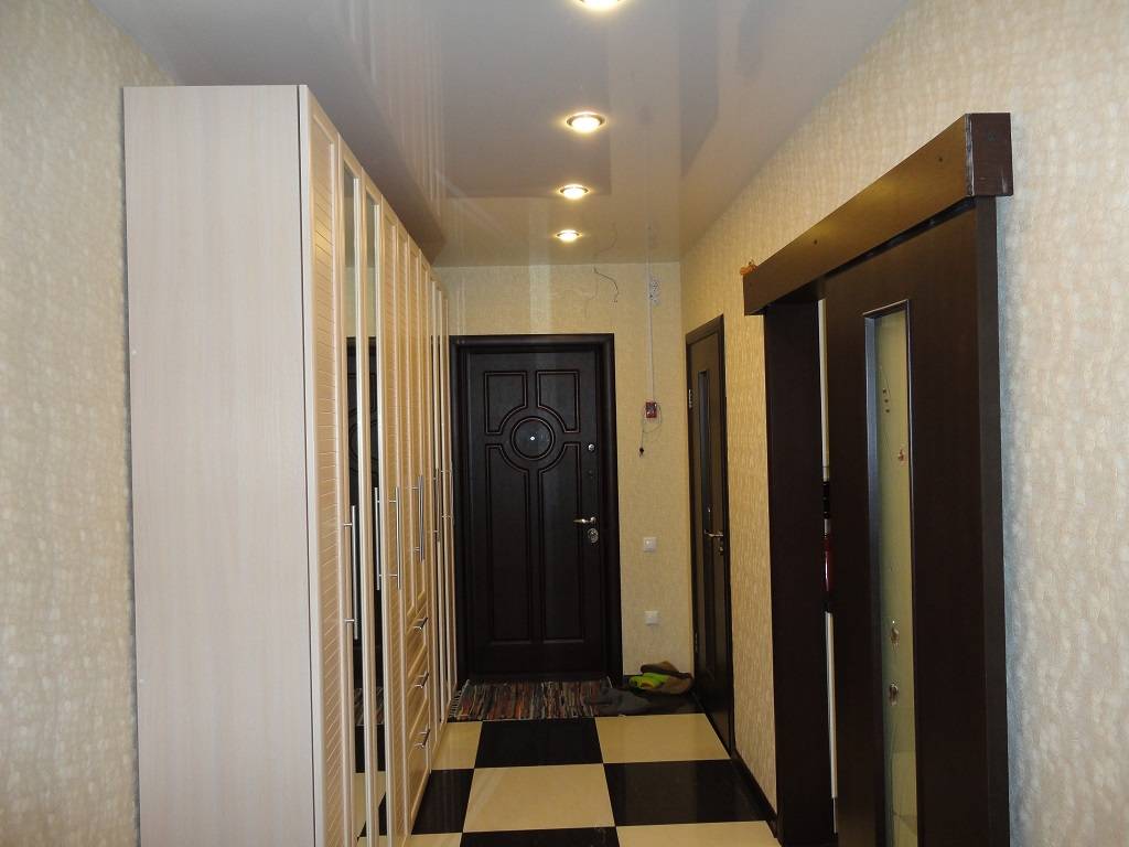 Если прихожая небольшого размера, в ней отлично будет смотреться натяжной глянцевый потолок. Ведь он способен отражать свет, а это значит, что визуально он поможет увеличить пространство.