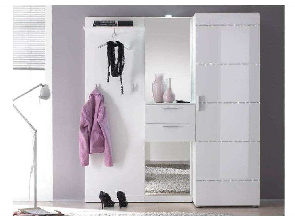 Белая прихожая, как правило, визуально прибавляет площадь комнате. Это наиболее заметно если добавить такой элемент декора, как зеркало.