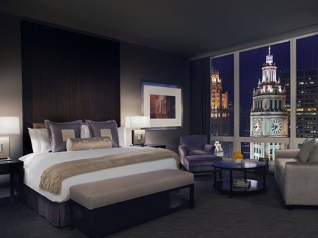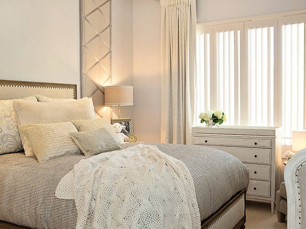 Для оформления спальни нужно использовать дорогостоящие ткани; возможно сочетание нескольких фактур.