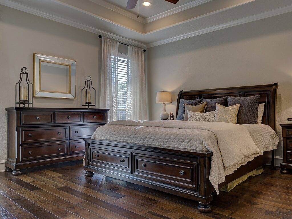 Необязательно отдельно подбирать каждый предмет для такой комнаты. Сейчас в продаже можно найти целые комплекты, которые украсят спальню в английском стиле. Это позволит сэкономить время и средства на покупку подходящей мебели.