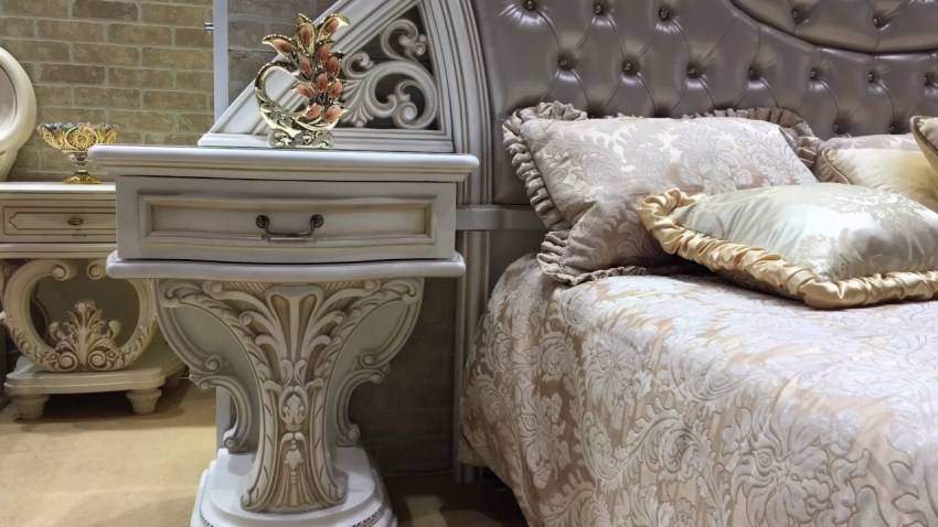 Как говорилось выше, классический стиль предусматривает большие зеркала, некоторые из них могут идти в комплекте с комодом. Вся мебель должна быть в одном стиле и светлых тонах. Рекомендуется ее приобретать одним гарнитуром, а не разрозненными элементами. На фото можно наглядно посмотреть, какая мебель необходима для вашей спальни.
