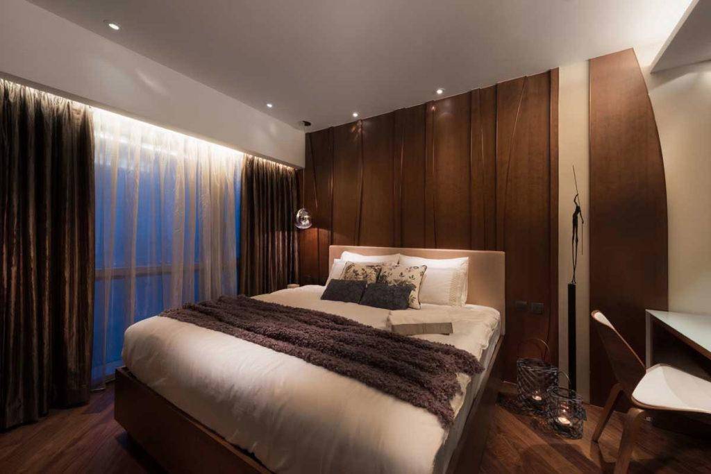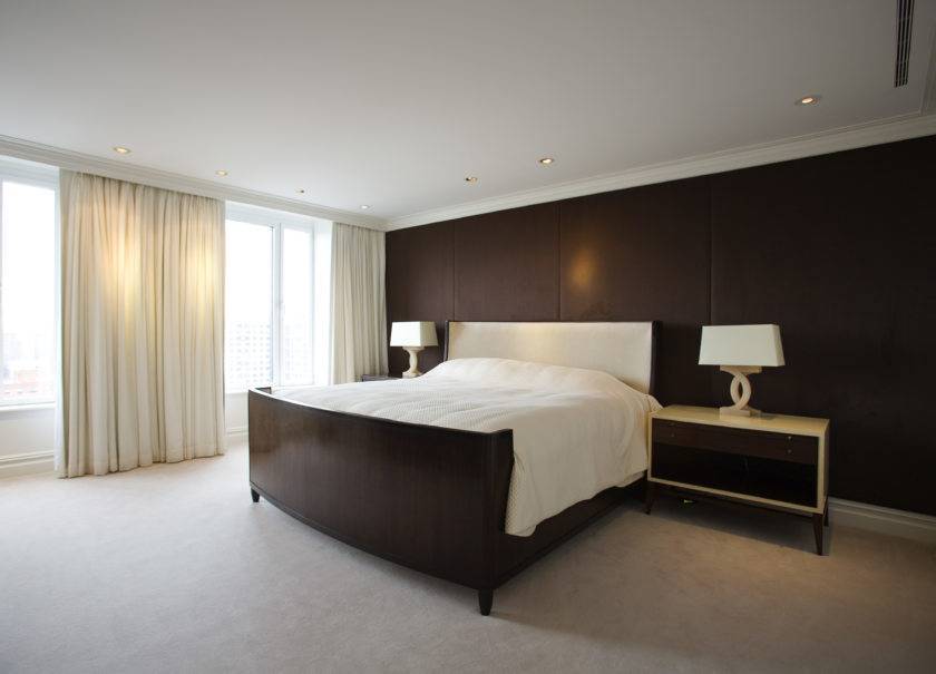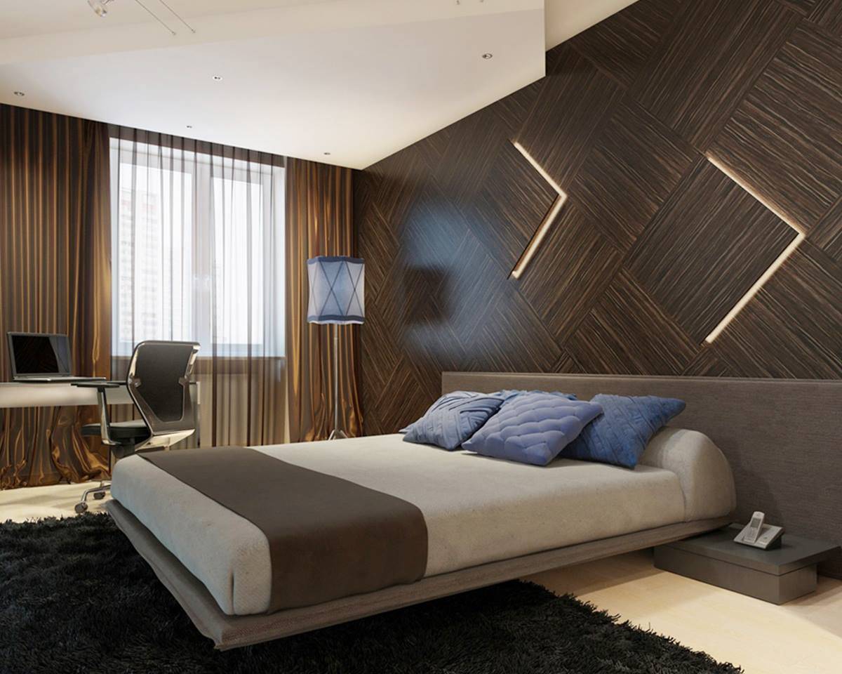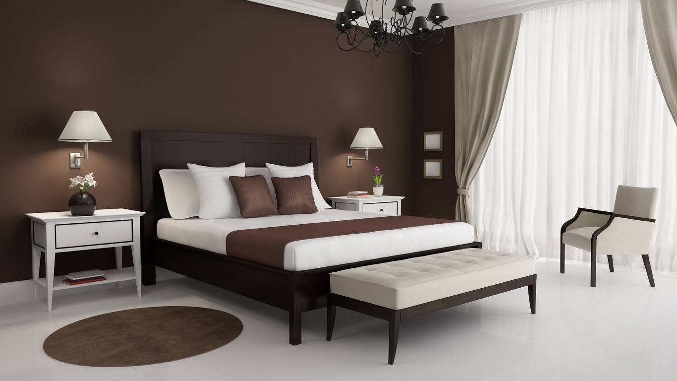 Полностью коричневая спальня является плохой идеей, так как существует возможность перестараться, и в комнате станет настолько темно находиться, что стены будут казаться ближе, чем они есть.