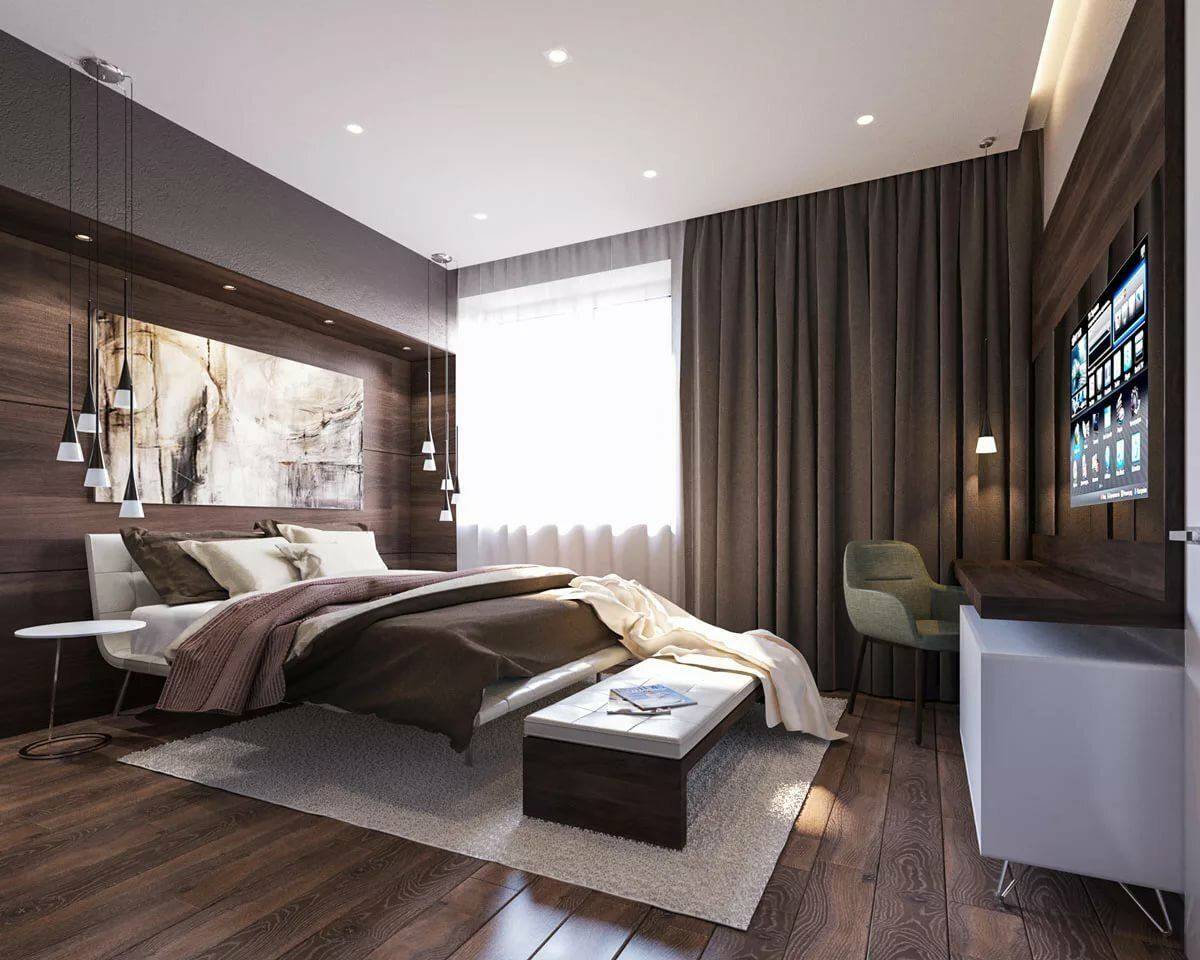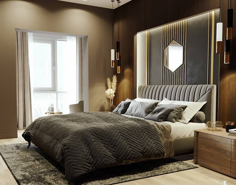 Спальня коричневого дизайна в разных стилях