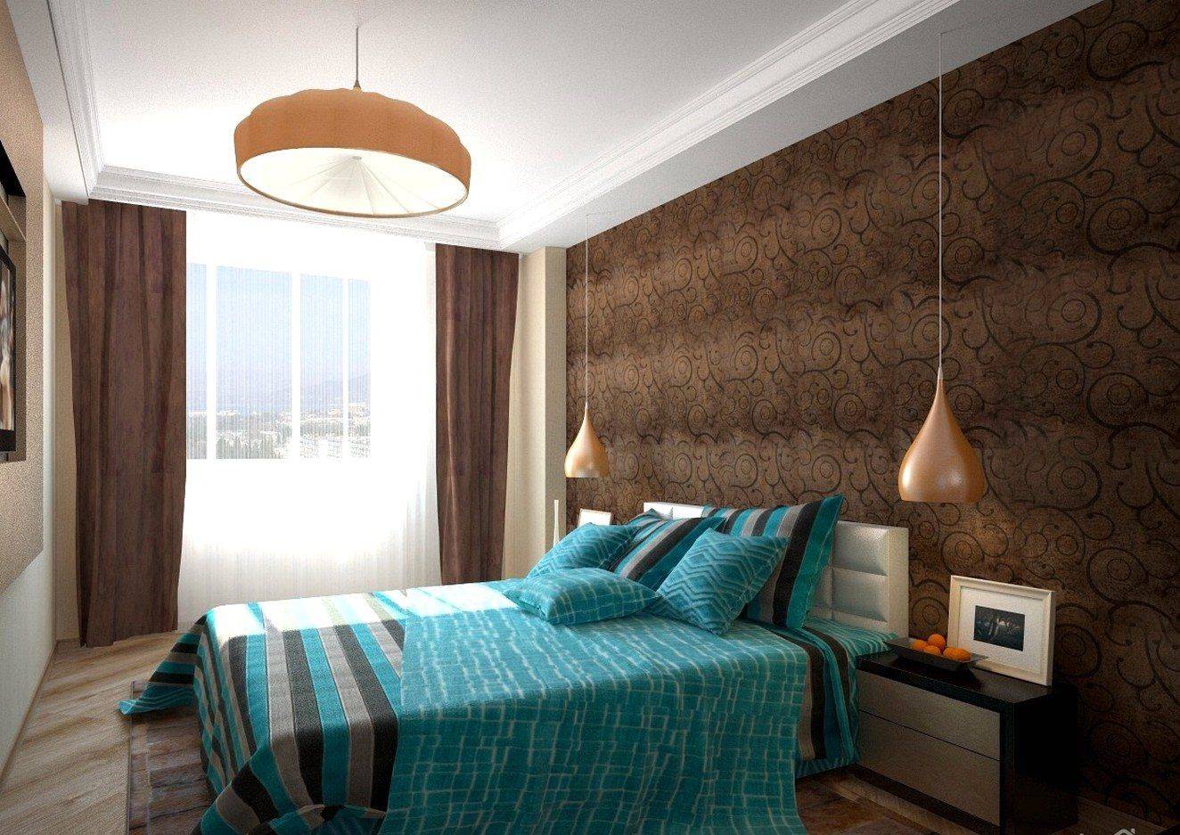 Помнить о том, что, если в спальне большое количество небольших элементов, то и коричневые обои в спальню стоит подбирать однотонные, и аналогично, если в спальной комнате небольшое немного больших объектов, для создания низкой динамичности используют обои с некрупными рисунками;