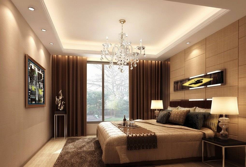 Освещение может служить визуальным расширителем спальни до комфортных по ощущениям размеров. Чем темнее стены, тем меньше света они отражают и больше поглощают, но свет, падающий сверху, они поглощать не в силах;