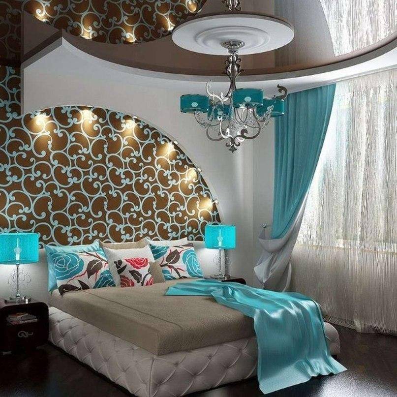 Прекрасное сочетание, которое работает, как мягкий контраст. Бирюзовый — это холодный цвет, который семантически связан с небом, а коричневый с землей, поэтому их тандем играет гармонично и наполняет интерьер спальни особой атмосферой.