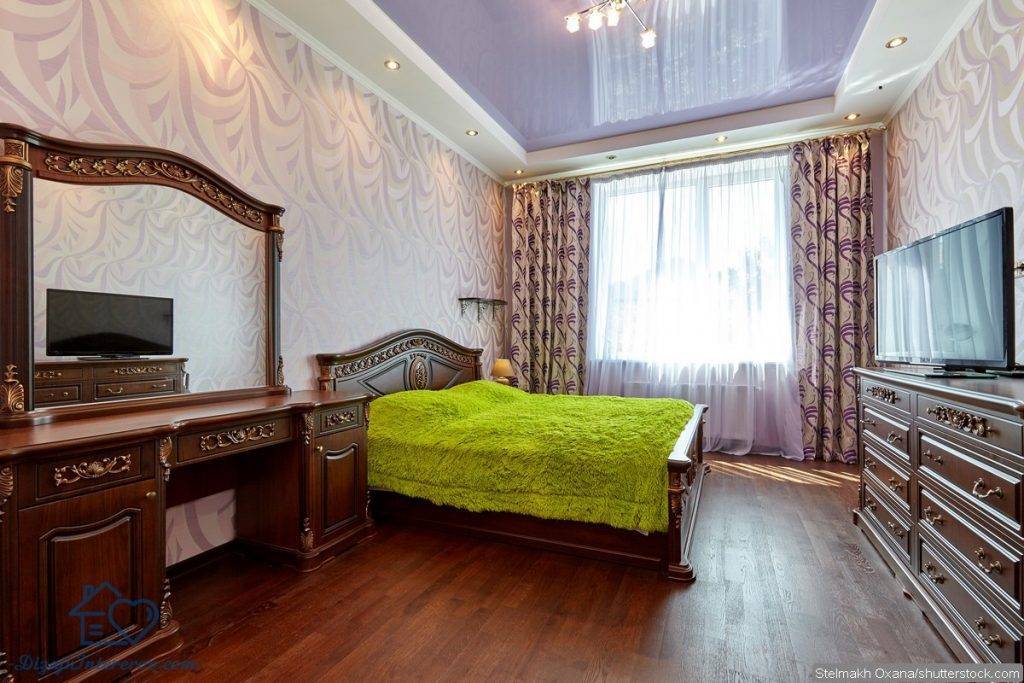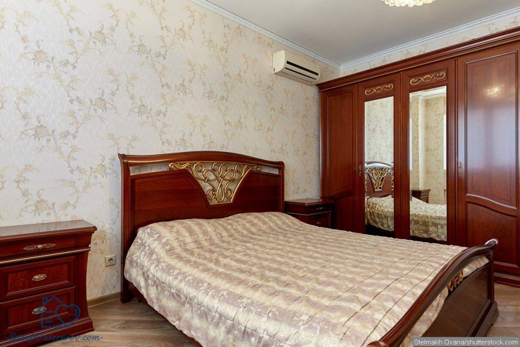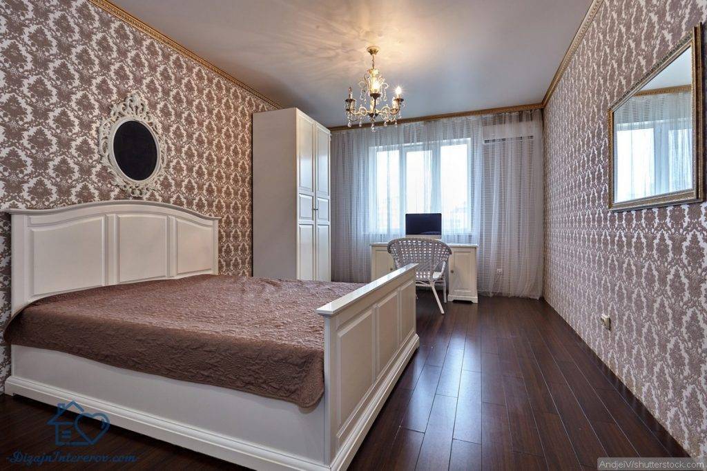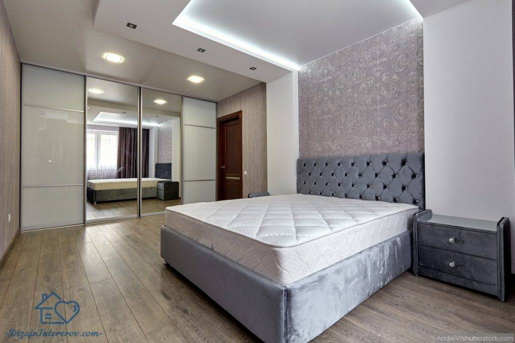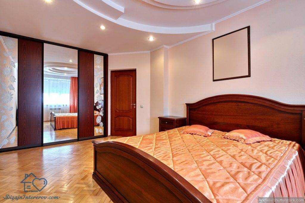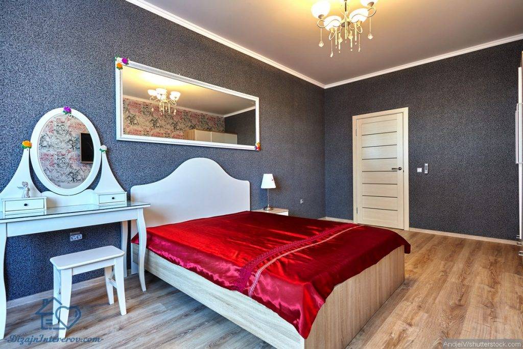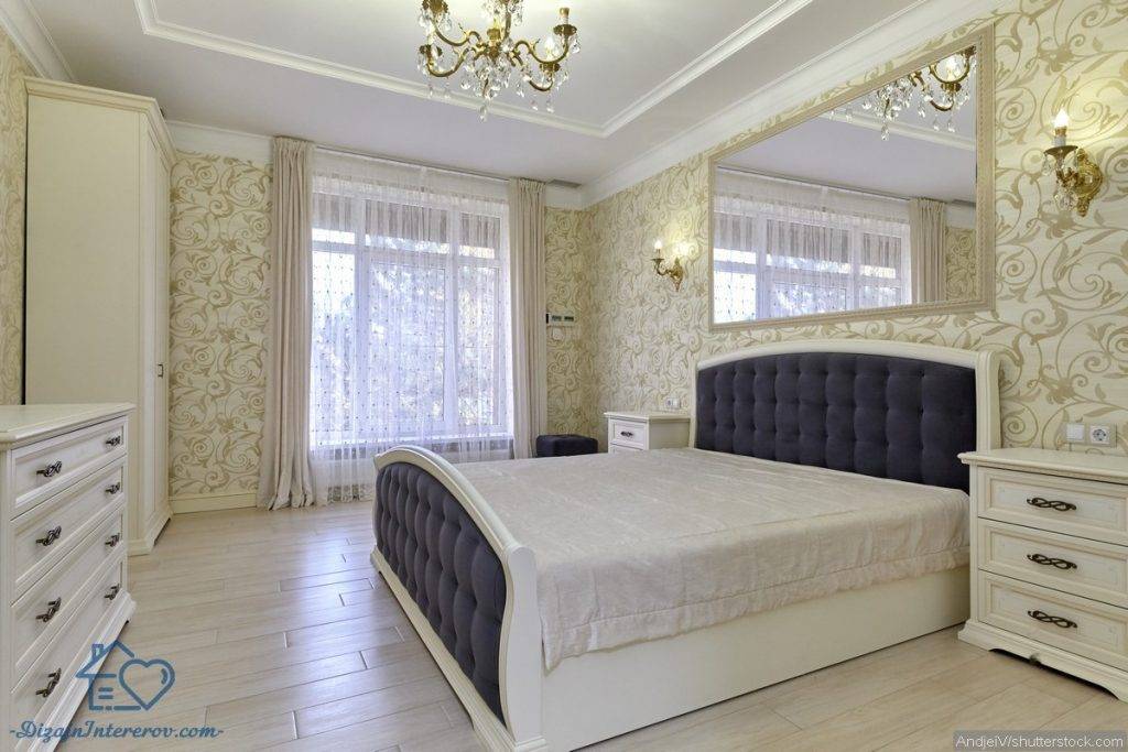 В спальню следует поставить шкафы или комоды, не лишним будет и туалетный столик. Не обойтись и без зеркала: оно может стоять на полу, висеть на стене или заменять дверцы шкафа, но оно точно должно быть в полный рост.