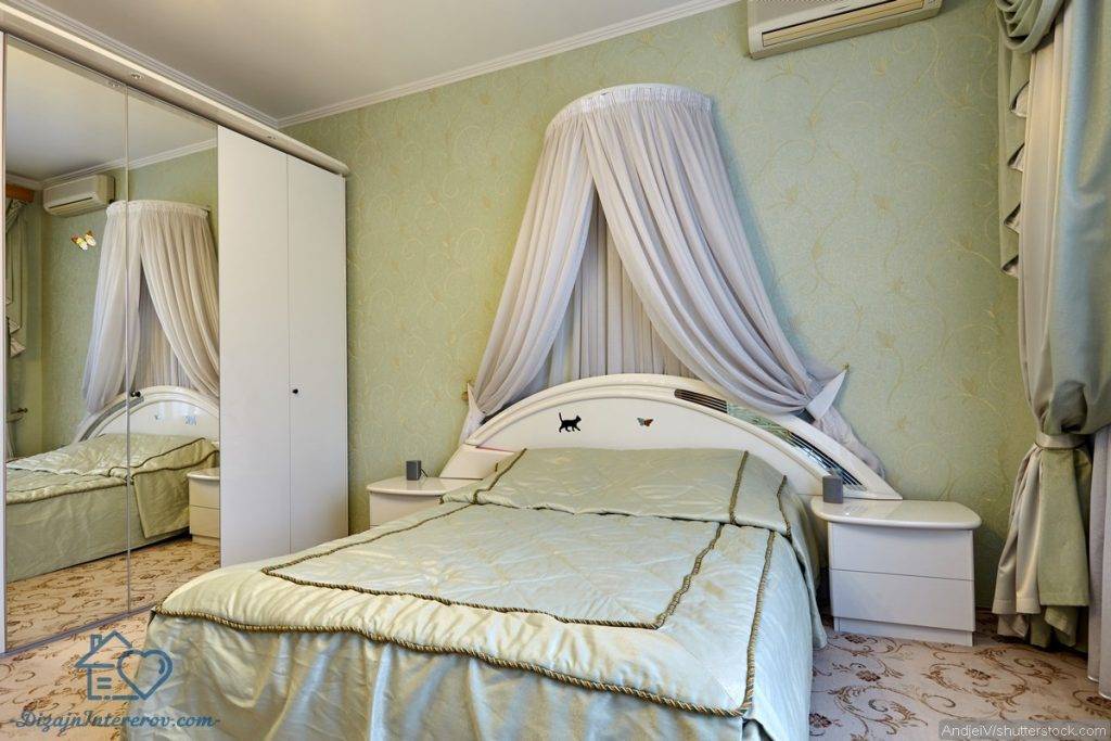 Отличным дополнением к почти любой кровати станет балдахин. Он создаст в комнате романтичную или сказочную атмосферу. Бывают и технологичные «балдахины» прямоугольной формы: вместе с кроватью они создают своего рода капсулу. Современно и немного космически.