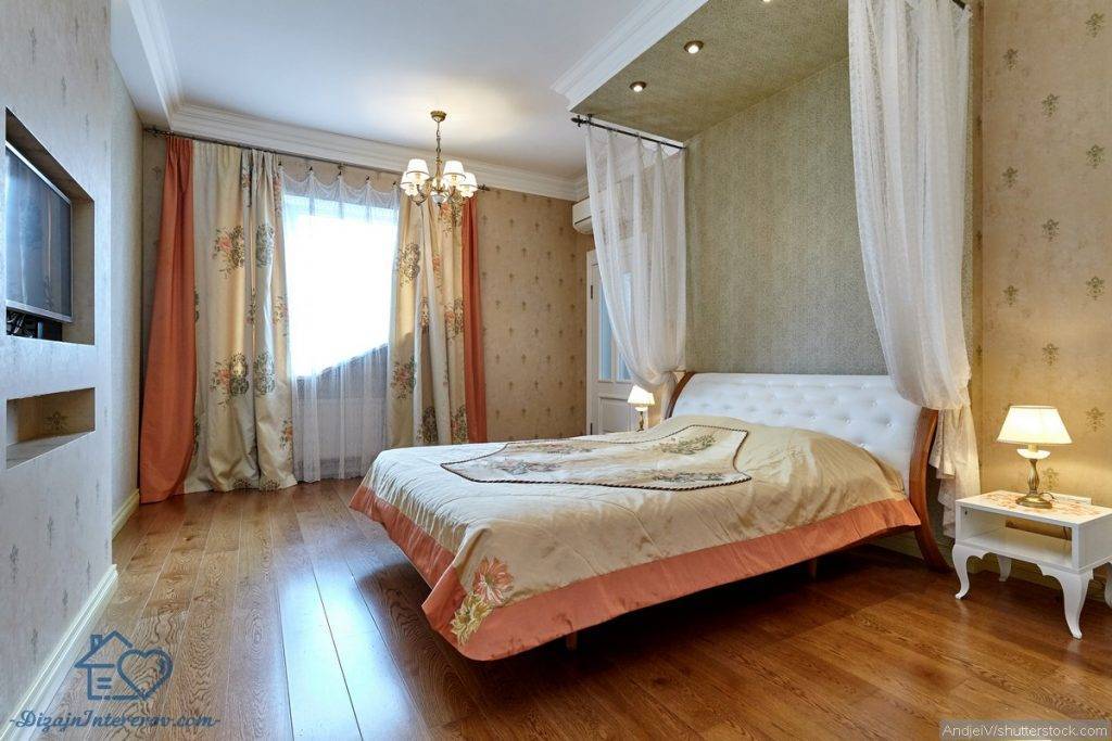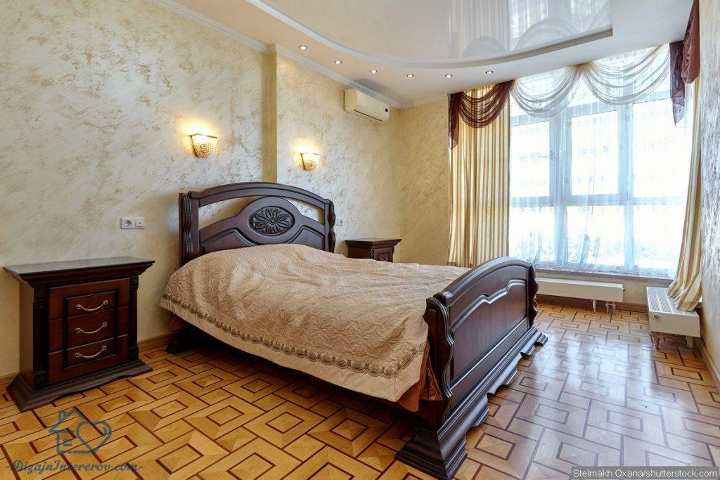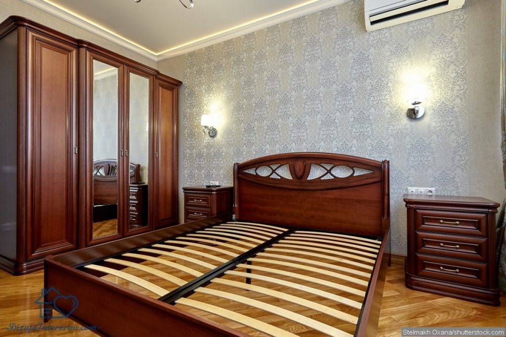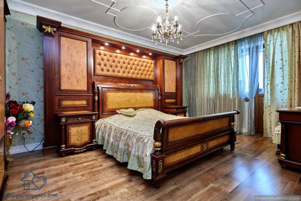 В любой спальне центральное место, конечно, занимает кровать, поэтому при оформлении комнаты ей нужно уделять особо внимание. Самый классический вариант — прямоугольная кровать из дерева