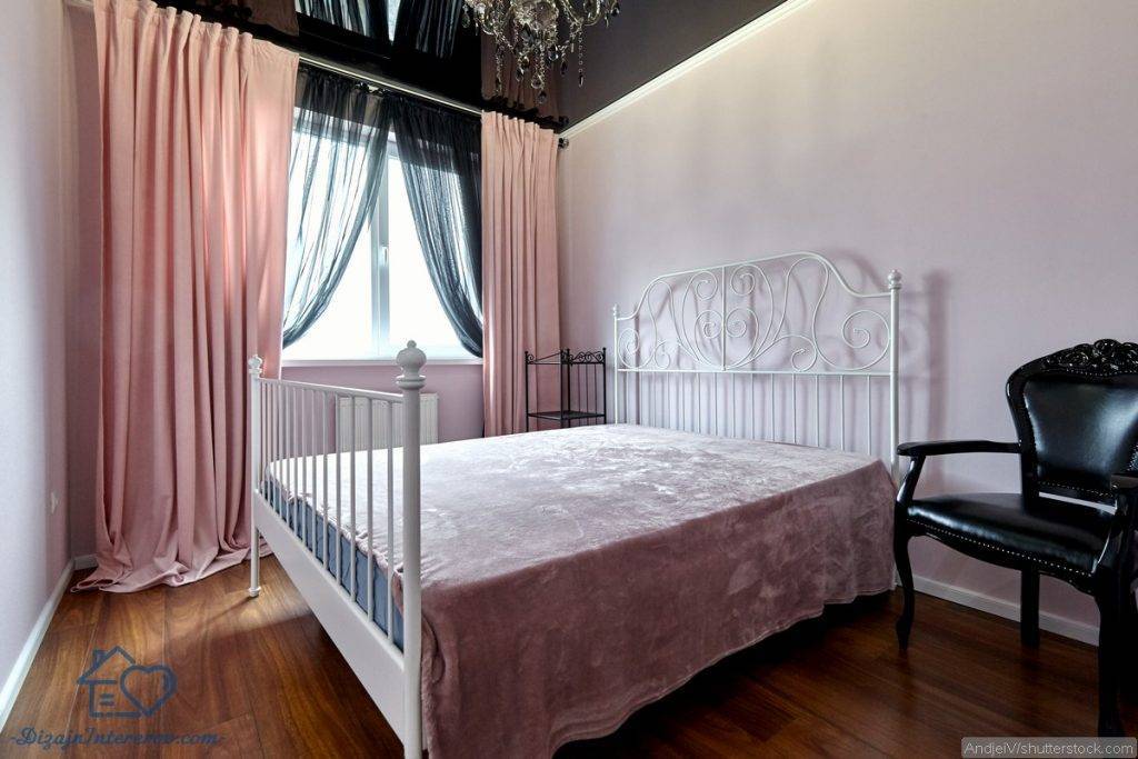 Остальная мебель, конечно, должна гармонировать с кроватью. Лучше всего, чтобы она была того же цвета. Если у кровати кованое изголовье, красиво будут смотреться столики и стулья с коваными деталями. Если кровать деревянная, вся мебель тоже обязана быть деревянной.