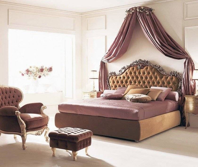 Украсят спальню роскошное зеркало с красивой рамой (с растительными мотивами и пр.).