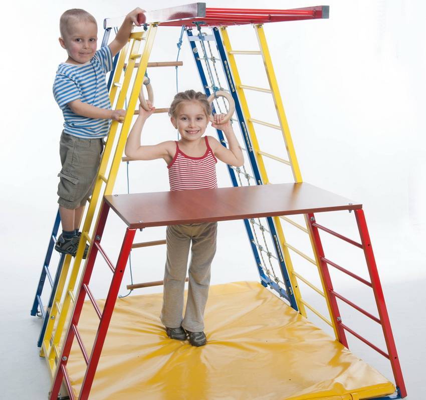 Наибольшее число образцов имеет в своем составе два-три снаряда, объединенных в единое целое. Такие снаряды как шведская стенка или веревочная лестница, кольца и турник входят в большинство из них. Многие комплекты спортинвентаря и оборудования для малышей дополнены матом и канатом.