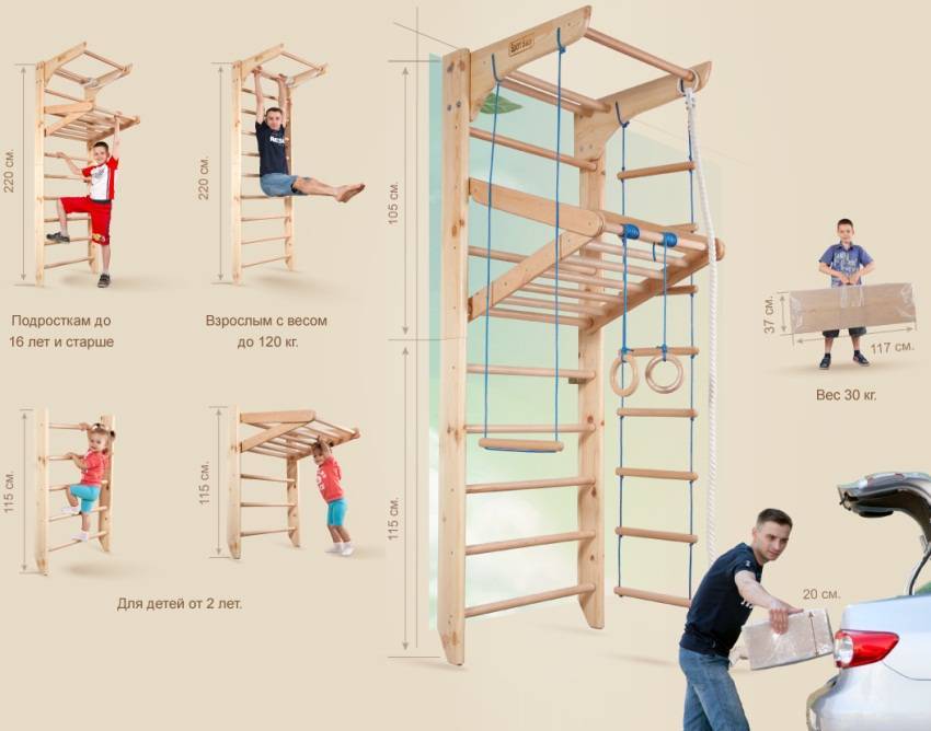 Ориентировочные размеры шведской стенки для разных возрастных групп