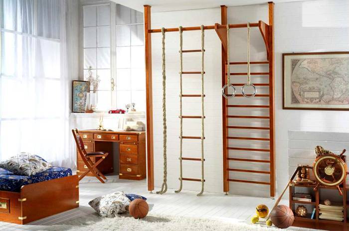 Кроме того, это улучает координацию, способствует укреплению рук. Как правило, шведская стенка – это главное приспособление любого детского уголка.
