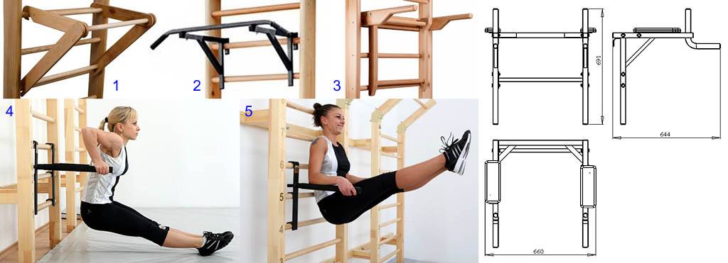 Другие варианты исполнения навесного турника и ручного упора для шведской стенки показаны на след. рис.: