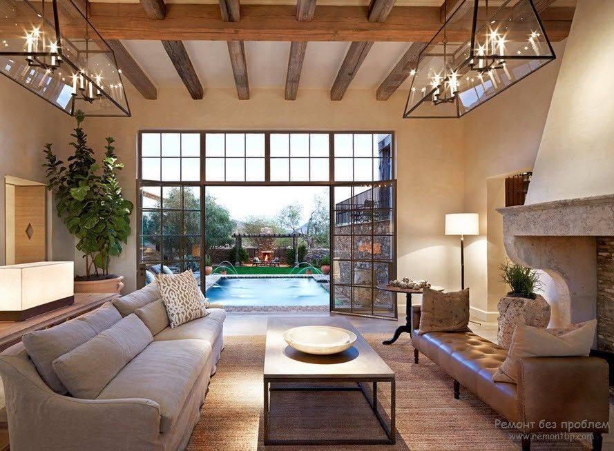 Характерным элементом является и максимально простая отделка всех поверхностей. Она выполняется натуральными материалами.