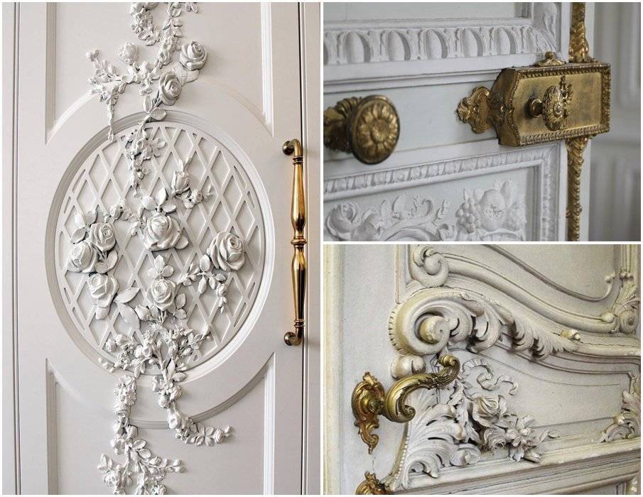 Широко применяются в интерьере сталинского ампира межкомнатные двери белого цвета, с обязательным остеклением. Причем остекление может быть в виде мозаики.