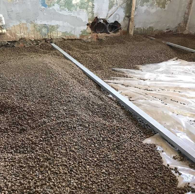 - при значительной неровности пола или его поднятии более чем на 10 см, подойдет керамзитобетонная стяжка. Несмотря на то, что процесс укладки достаточно трудоемкий стяжка с керамзитом обладает хорошими тепло- и звукоизоляционными характеристиками;