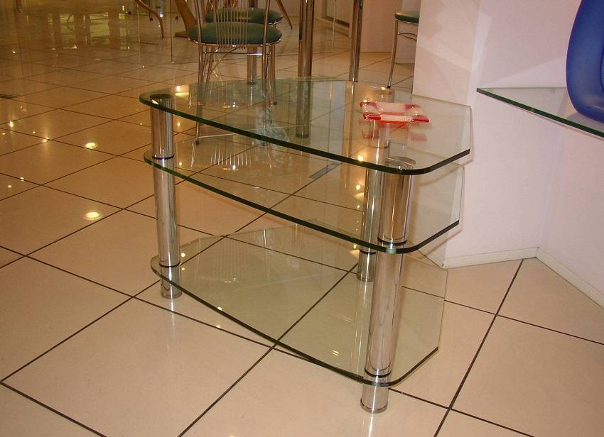 Например, столешница из специального закаленного стекла толщиной 15-20 мм, способна выдерживать нагрузку более 100 кг, чего вполне достаточно для домашней мебели. Сегодня практически вся стеклянная мебель имеет толщину поверхности от 8 мм, естественно, с каждым дополнительным миллиметром будет увеличиваться и цена изделия.