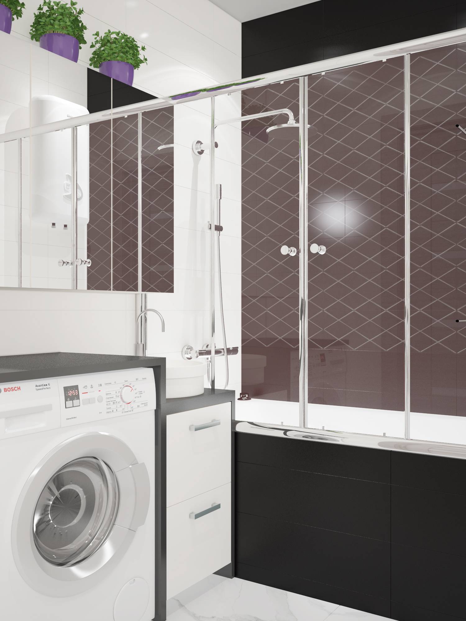 Такой тип шторок обычно используют в небольших ванных для экономии пространства. Конструкция позволяет обустроить даже самую маленькую ванную. Некоторые модели делают не из стекла, а из пластика, так как постоянные передвижения могут повредить перегородку.