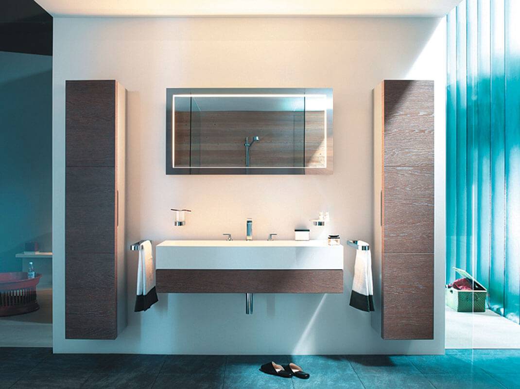 Отличным вариантом для обустройства ванных являются шкафы, оборудованные дополнительной подсветкой.