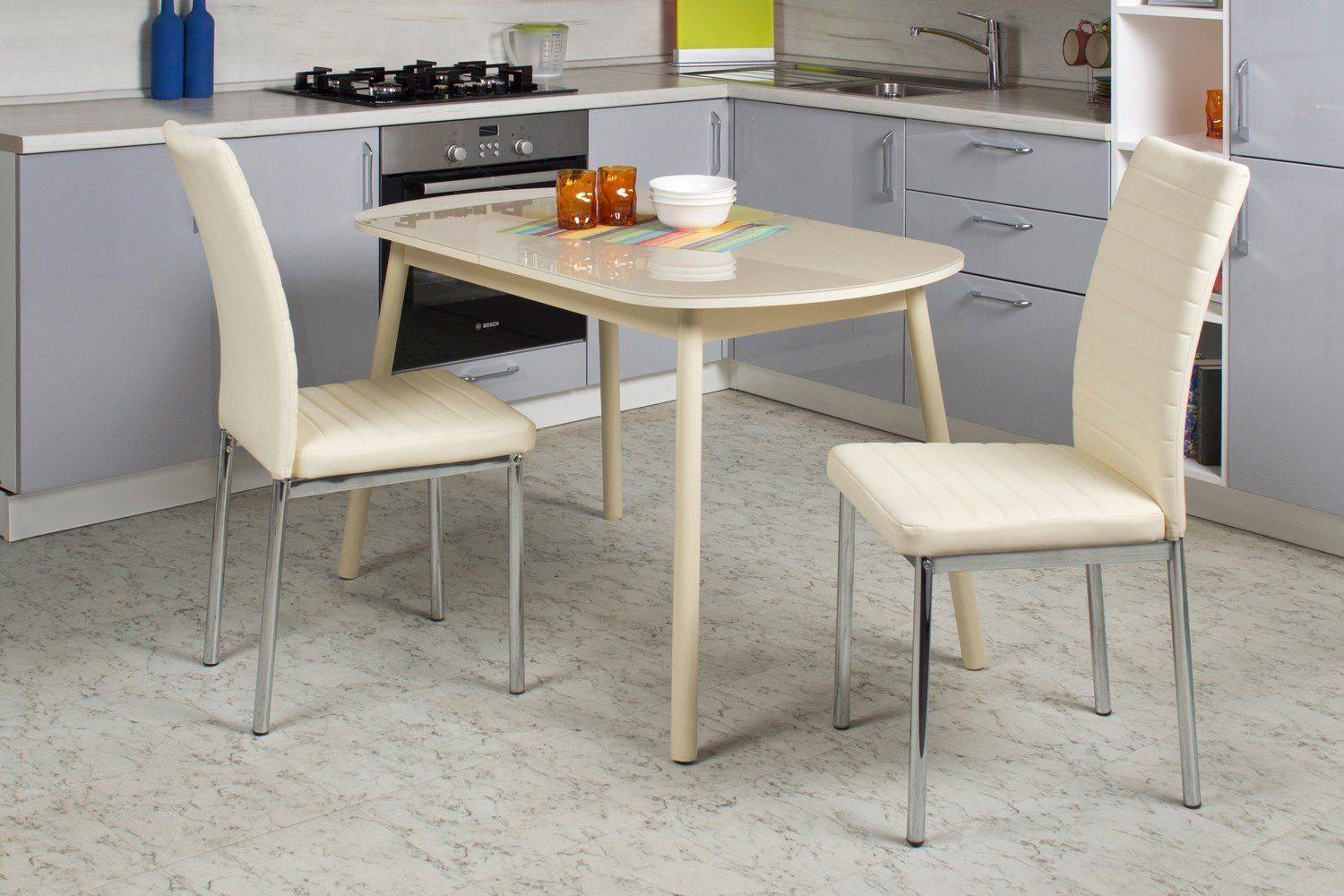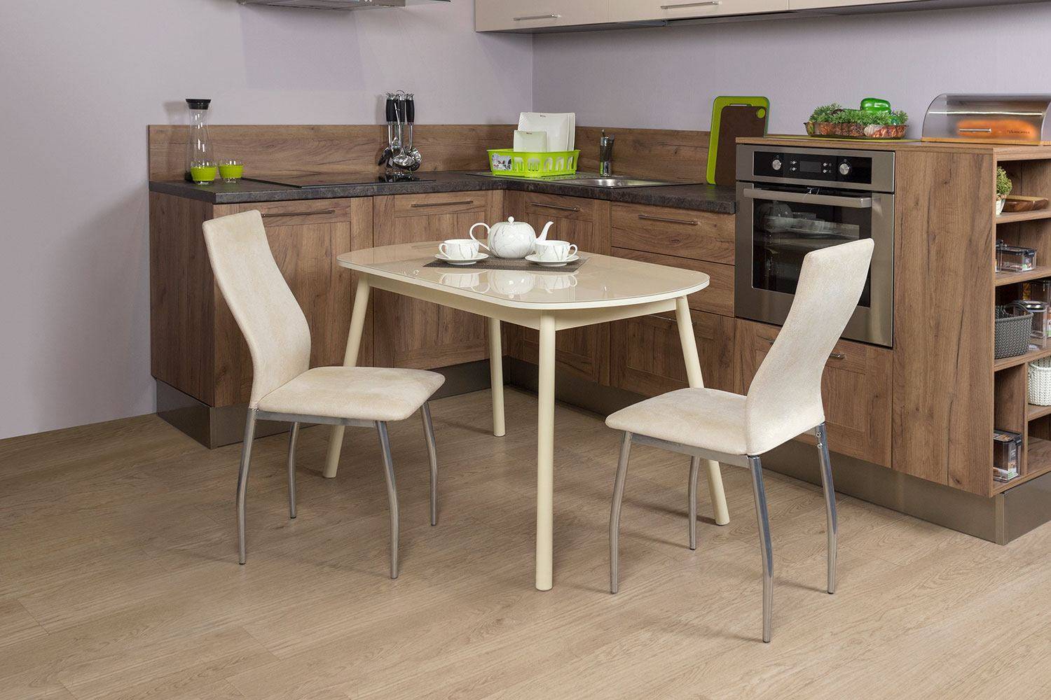 - Стеклянная поверхность стола визуально расширяет помещение кухни, делает его более светлым и легким;