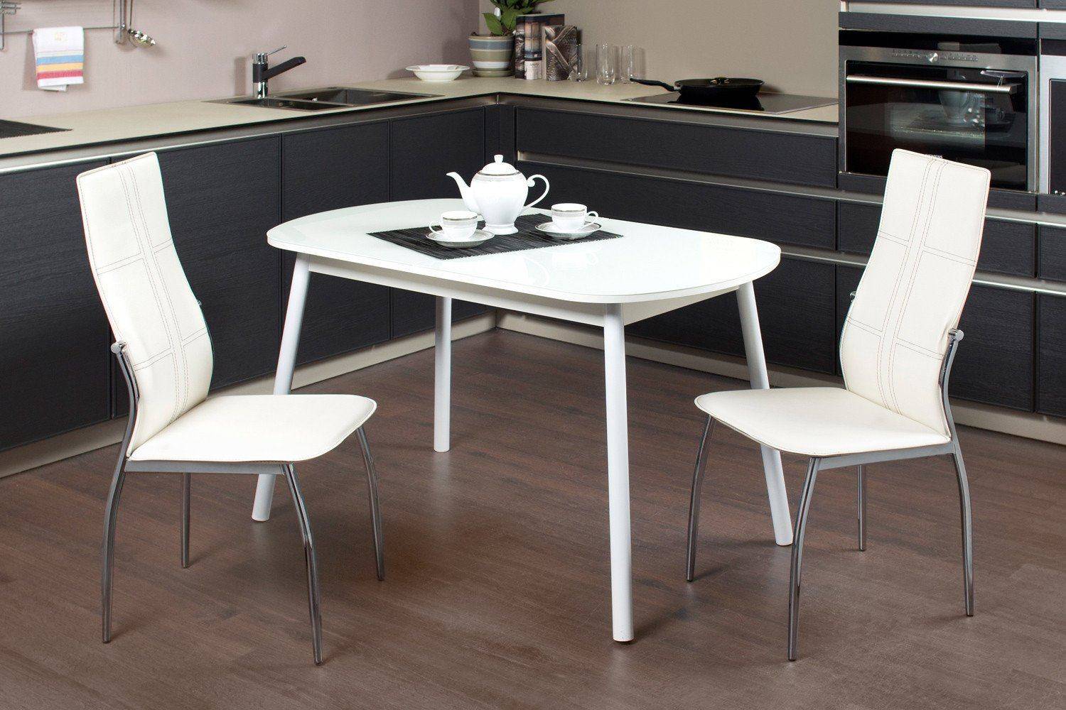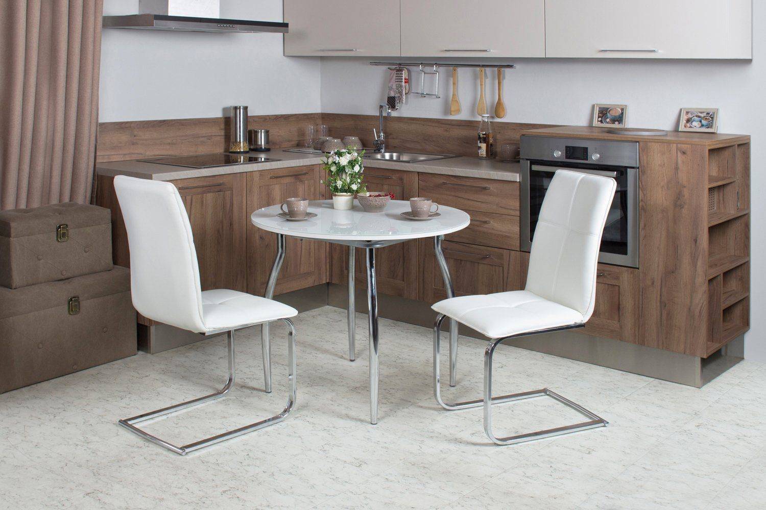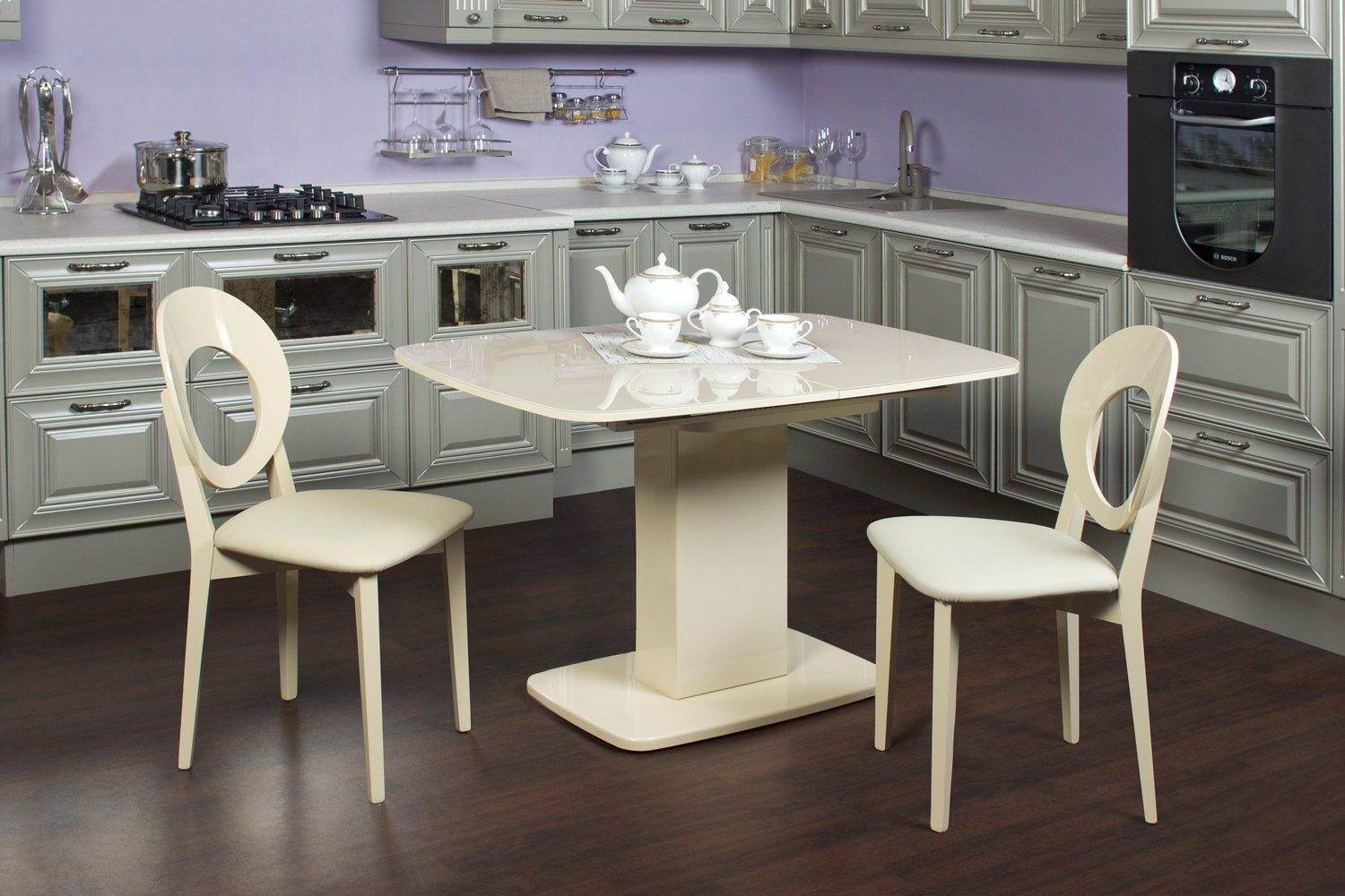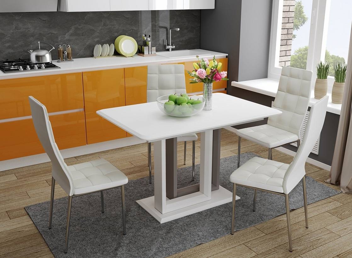 - Белый обеденный стол на кухню. Матовая или глянцевая поверхность позволяет существенно расширить границы помещения, придавая вид просторной комнаты.