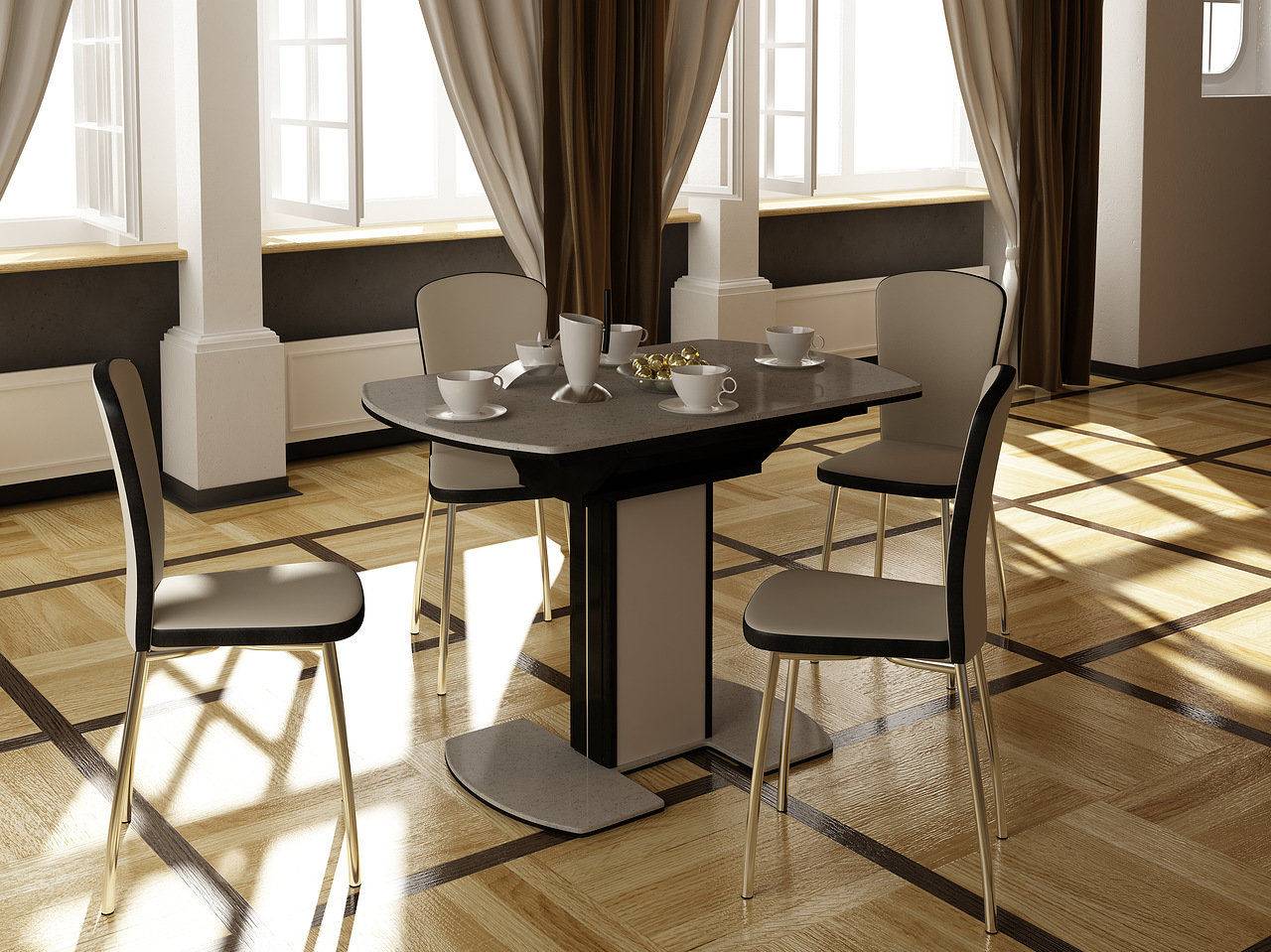 Одно из главных достоинств стола Canopus – низкая цена для модели со стеклянной столешницей. Но и по остальным параметрам он не проигрывает более дорогим вариантам – хромированные ножки, закругленные углы, легкая конструкция, не утяжеляющая пространство. Благодаря компактному размеру стол отлично впишется даже в небольшую кухню, а внешняя простота делает его универсальным, подходящим к любому интерьеру. Под столешницей расположена стеклянная полка, которую можно использовать в декоративных или практических целях.