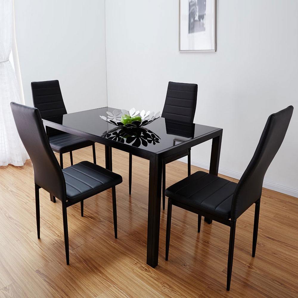 Столы из глянцевого или черного стекла хорошо сочетаются с глянцевым белым кухонным гарнитуром. Но при таком выборе учтите, что потребуется постоянная и тщательная очистка: и глянцевое белое, и черное стекло не переносят малейших следов пыли и грязи. На них также видны отпечатки пальцев.