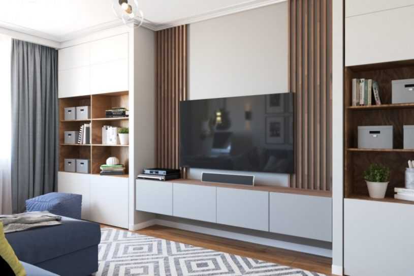 Дизайн стены с телевизором в гостиной – фото интерьеров