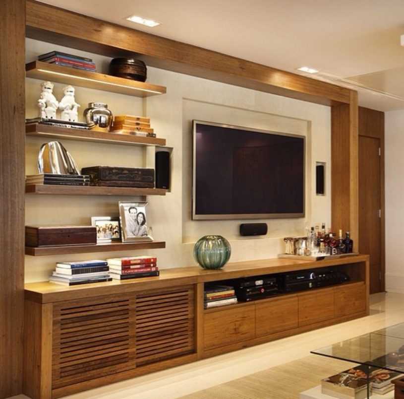 Существуют также компактные, минималистичные варианты, которые подразумевают установку только телевизора и нескольких предметов декора. Они отлично подойдут для маленькой гостиной комнаты, гармонично дополнят интерьер.