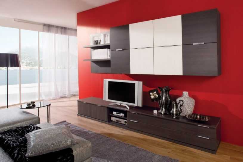 Стенка в гостиную в современном стиле должна гармонировать с интерьером