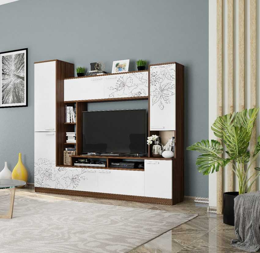 Под любой стиль помещения можно выбрать конкретную модель, в которой вещи будут находиться в порядке. Также не будет надобности приобретать отдельную тумбу под телевизор.