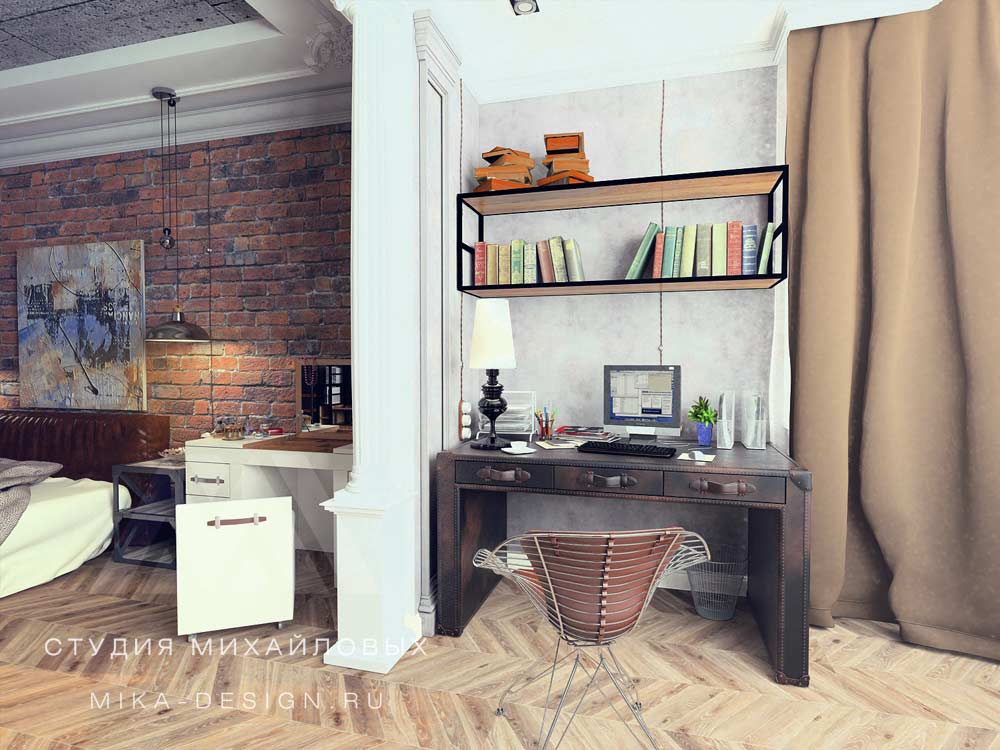 Дизайн в стиле Лофт примечателен и тем, что при небольших вложениях можно сделать комнату уютной и комфортной, что особенно важно для студии. Ведь затраты на ремонт и обустройство будут заметно ниже, чем для евроремонта или оформления в современных стилях