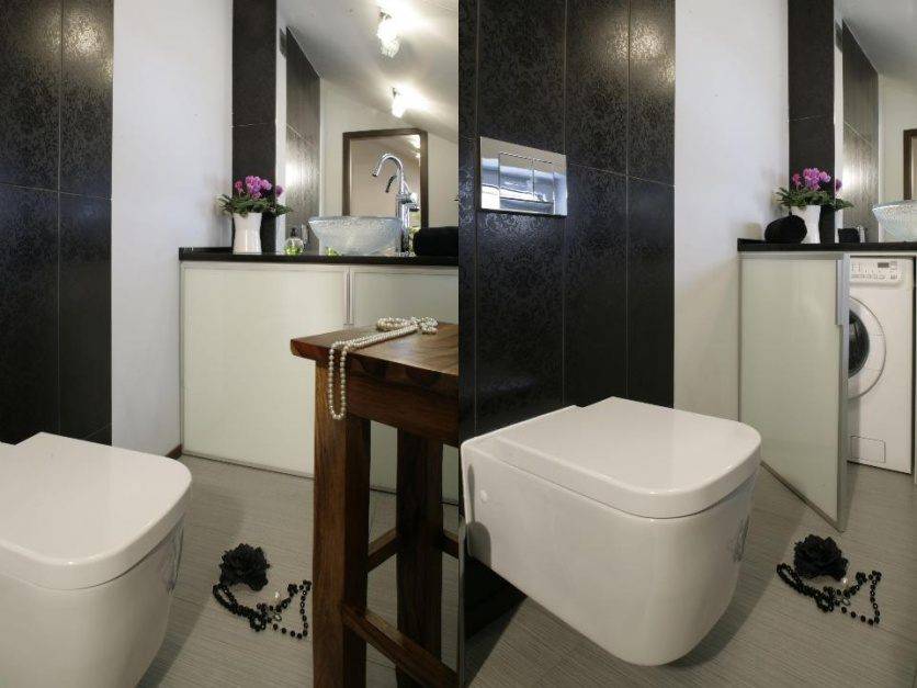 Установить стандартную модель в маленькое помещение ванной комнаты возможно, если провести не только перепланировку, объединив ванную с туалетной комнатой, но и поменяв ванну на душевую кабину. Плоские машинки устанавливаются вдоль стены в вытянутых помещениях без привязки к другим предметам мебели. Компактные модели подвешиваются, или устанавливаются под столешницей, раковиной, внутрь тумбы, шкафа.