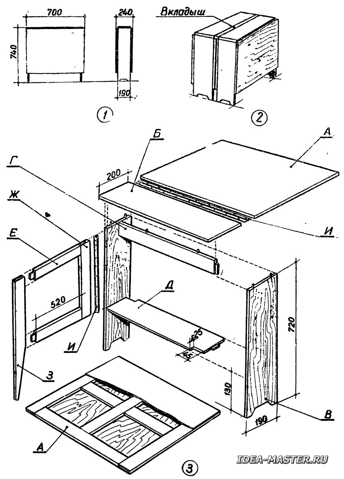 Если вы планируете производить сборку изделия самостоятельно, то можно использовать следующие параметры для отдельных деталей стола: