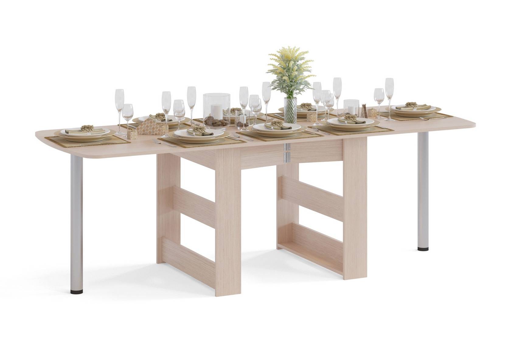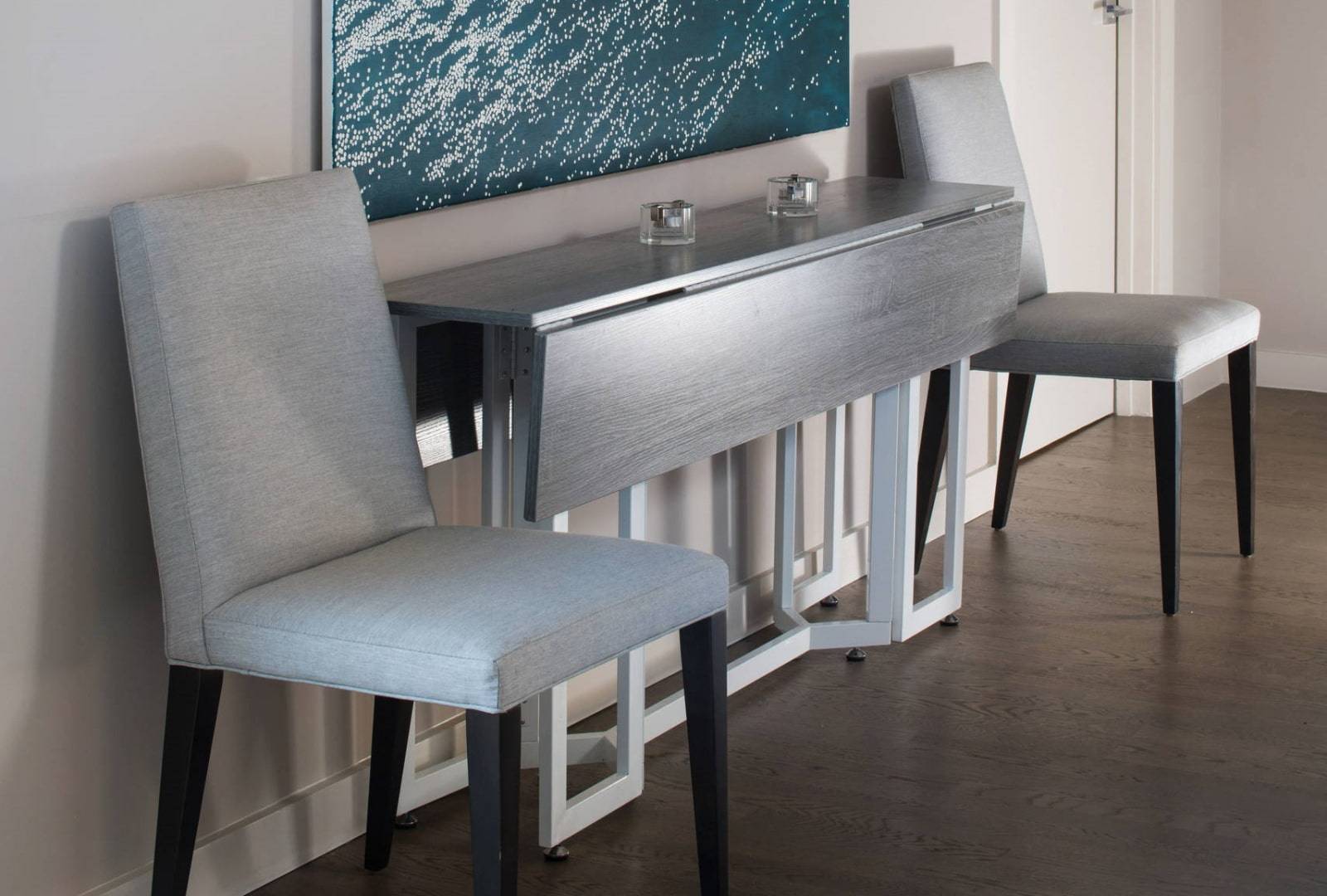 Прекрасный выбор для маленького пространства. В сложенном виде может выполнять роль туалетного столика, органично впишется в интерьер прихожей, будет отличной подставкой для вазы. Занимает минимум места, а при необходимости превращается в полноценный обеденный стол.