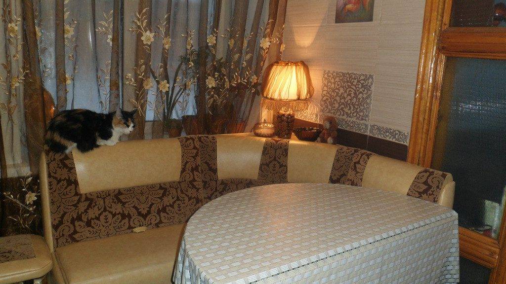 В угол круглый стол не загоняют — это непрактично. Но если свободен только угол — решение есть. Можно установить здесь угловое сиденье, а перед ним расположить стол. Такой план обеденной зоны вполне уместен на небольшой кухне.