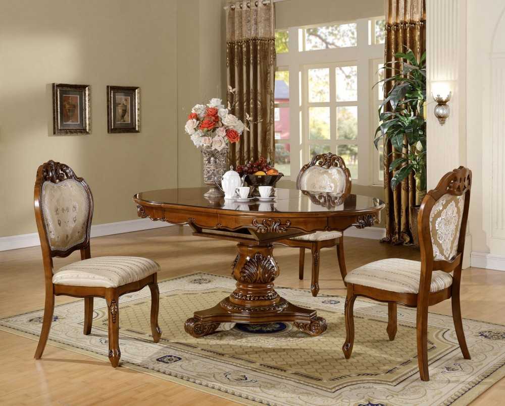 В гостиной дизайнеры рекомендуют устанавливать стол с одной ножкой. Такое расположение опоры не мешает гостям, в отличие от столов с перегородками. Для постоянного размещения лучше всего осуществить установку стола в центре зала. С точки зрения эстетики и удобства подхода к обеденной зоне, лучше варианта не придумать.