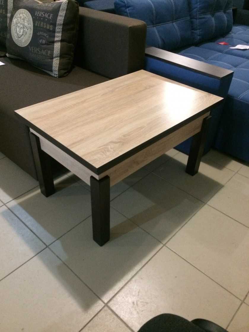 Классический вариант, который станет отличным решением при размещении в небольшую квартиру или помещение. Изделие заменяет собой сразу две мебели: журнальный и обеденный стол. Человек сможет как откинуться на диване и почитать свежие новости или посмотреть фильм, так и полноценно пообедать. Механизм отличается высокой прочностью и рассчитан на 200 000 трансформаций.