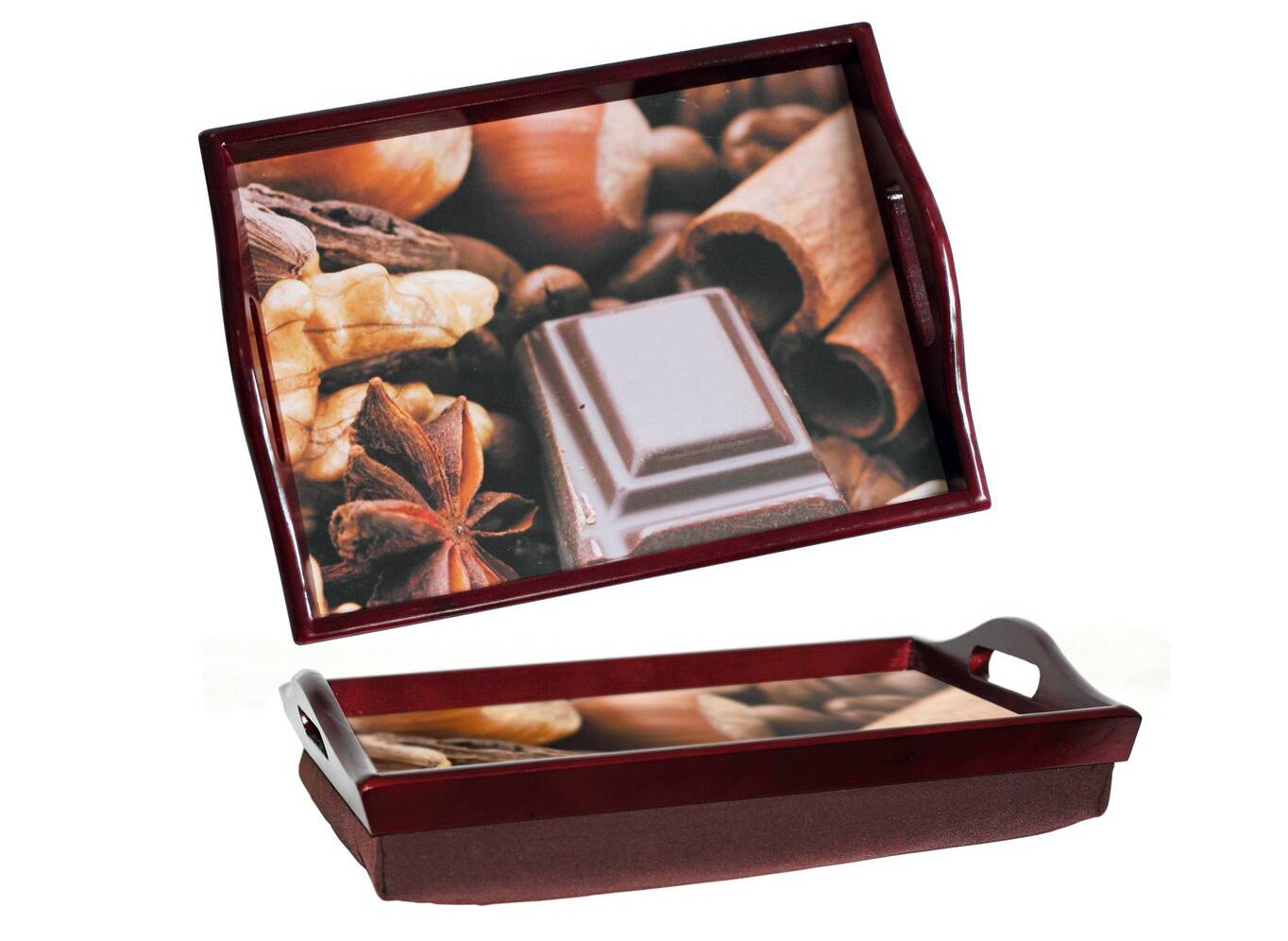 Наиболее дорогостоящий столик для завтрака в постель изготавливают из натуральной древесины, используя при этом такие породы, как дуб, бук, липа.