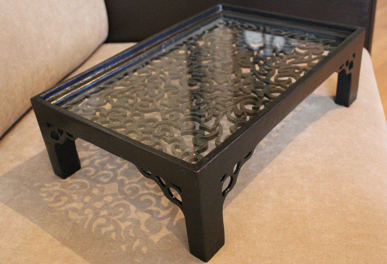 Людям, далеким от рукоделия, сделать столик для завтрака своими руками будет сложно. В таком случае, можно в качестве основы использовать уже существующий предмет, слегка переделав его.