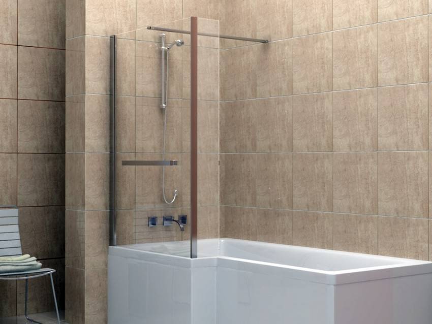 - одиночная душевая штанга, которая используется для душевых поддонов и ванн, открытых с одной стороны;