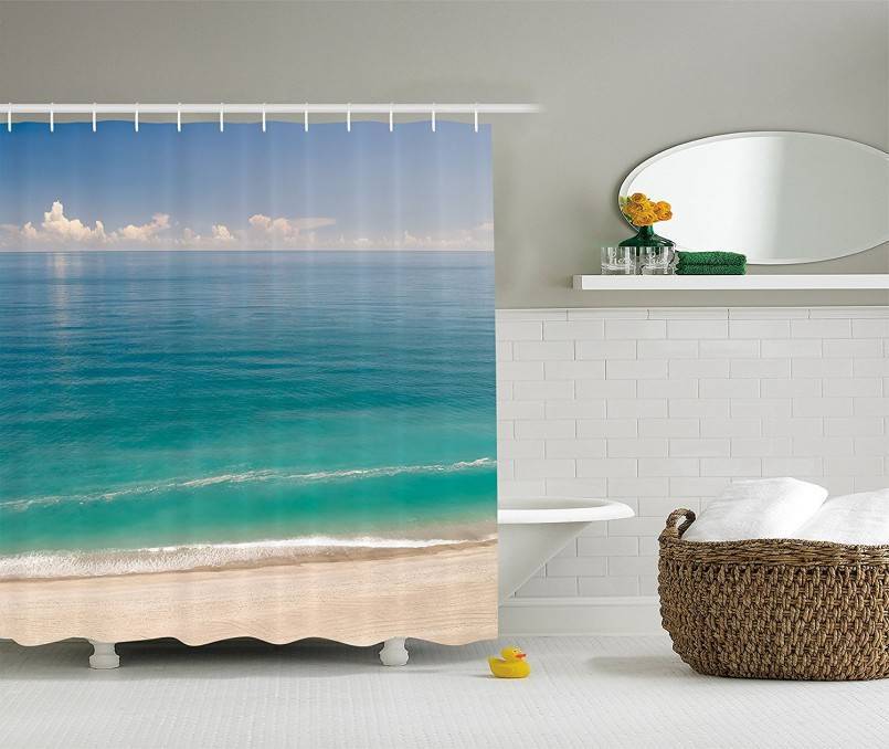 Прозрачность. Если в ванной не слишком яркое освещение, то закрытая тканевая штора будет создавать дискомфорт. В этом случае лучше выбрать занавеску светлых тонов либо из материала, способного пропускать свет.