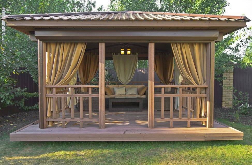 - прозрачность занавесок визуально увеличивает пространство беседки;