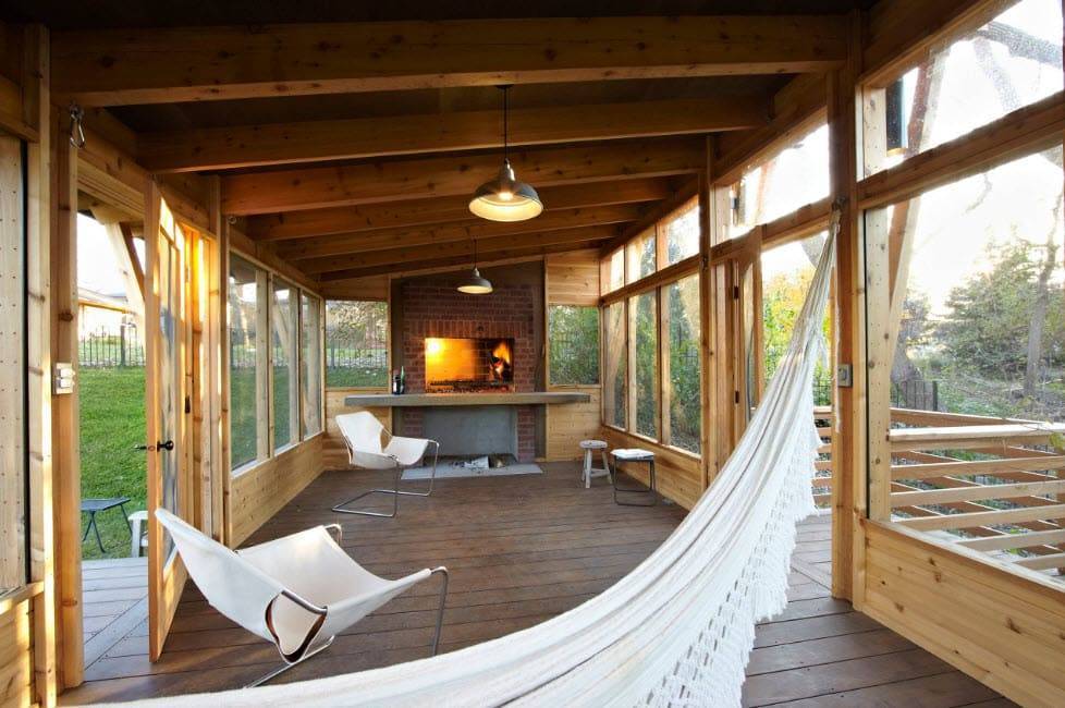 - С наступлением сумерек отдых на свежем воздухе не заканчивается. Посиделки и поздние чаепития будут такими же комфортными; ничто не помешает почитать книгу или поработать на ноутбуке.