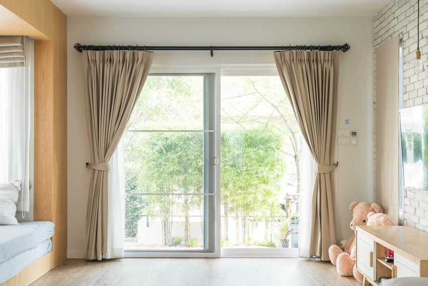 - Изолирование пространства. Такая функция пригодится жителям первого этажа. Плотно зашторенные гардины создают атмосферу отделенного от внешнего мира пространства.